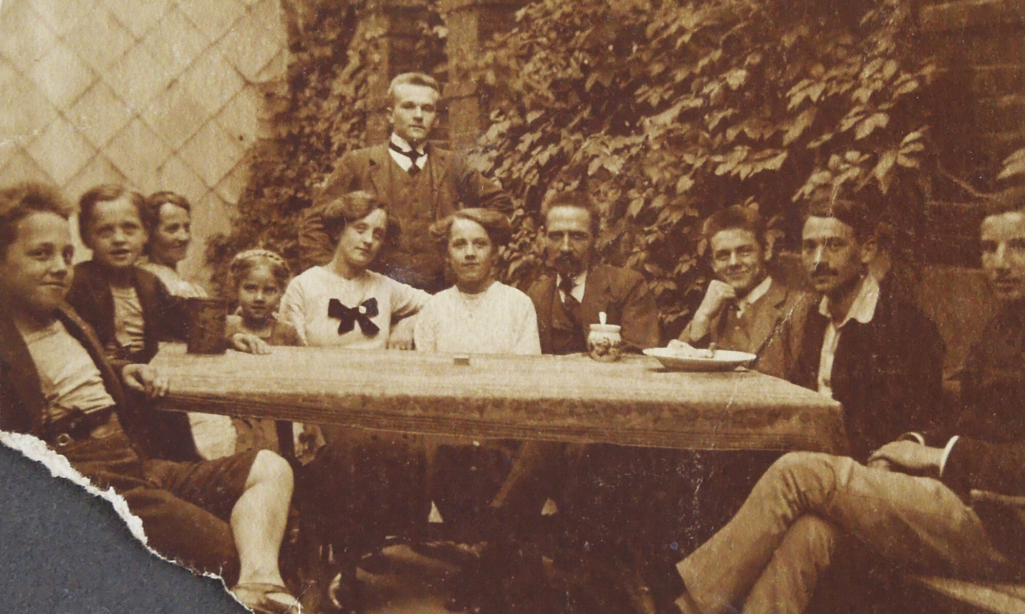 Otto, Paul, Anna (mother), Kary, Anny, Steffy, Josef (father), Ernst, Robitschek brothers and Anton Grolig (behind). Klosterneuburg, Austria, in 1913